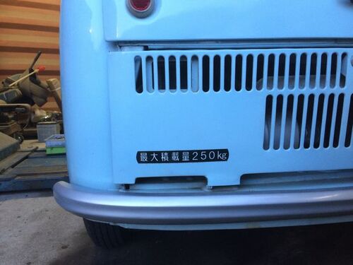 2年前の車検入庫時にプリンターで作った、スバル360カスタムの 最大積載量ステッカー。 意外と全然大丈夫ですね。 ほとんど変化ありませんでした。 おクルマはカーポート保管だそうです。 なるべく似せて作ったけど、フォントが細いな~